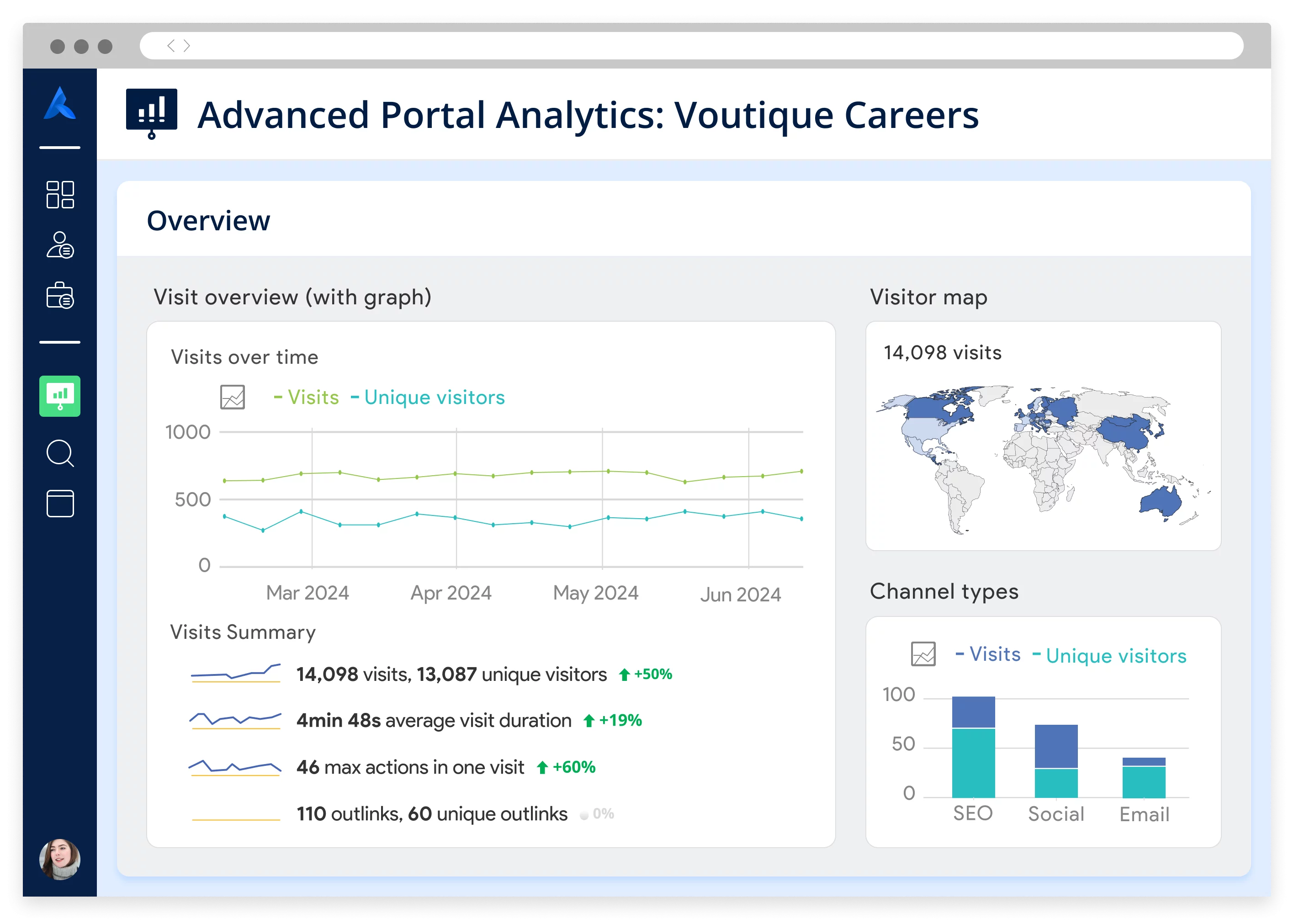 Avature’s best-in-class career sites comply with industry standard accessibility guidelines, provide extensive branding options and can be deployed quickly on the Avature platform or in front of your legacy ATS. Your team can easily manage rich media content with our advanced CMS feature set, promote jobs that semantically match job seekers’ profiles using Avature AI, optimize jobs for search engine ranking (SEO), leverage built-in screening and survey tools to pre-qualify talent, and use out-of-the-box analytics to measure traffic.