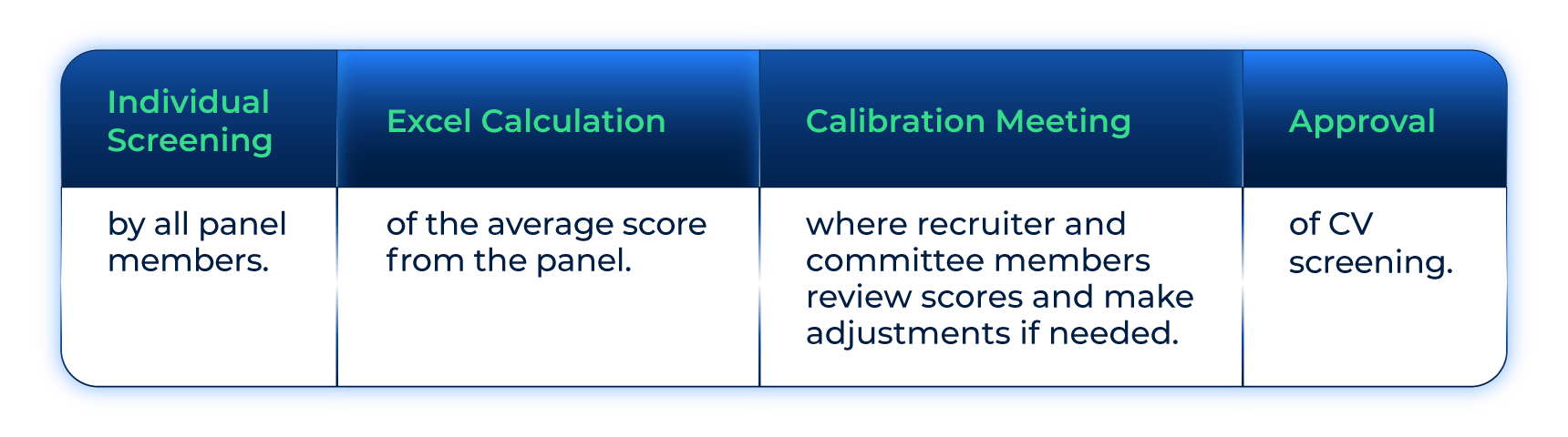 Reducing bias was one of ECB’s main concerns when it came to enhancing their existing screening process. With the Avature Hiring Manager Portal, panel members can’t view other scores until the calibration meeting, which helps mitigate influencing and bias among panel members.