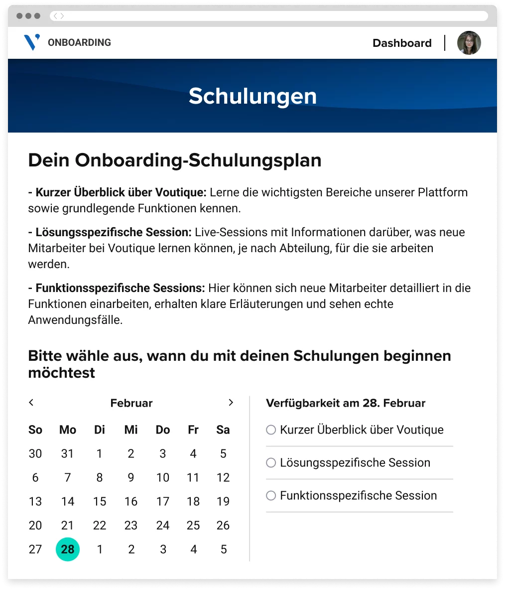 Nehmen Sie neuen Mitarbeitern die Angst mit einem für Mobilgeräte optimierten, personalisierten Erlebnis im Firmendesign, das einem sozialen Netzwerk ähnelt. Halten Sie Hiring Manager auf dem Laufenden und nutzen Sie Skills-Mapping und KI, um neue Mitarbeiter mit einschlägigen Karrierewegen und Lernangeboten zusammenzubringen.