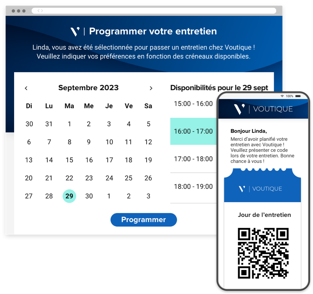 Améliorez l’efficacité de vos équipes grâce aux fonctionnalités d’autoplanification d’Avature. Offrez aux candidats la visibilité et la flexibilité de choisir l’heure idéale de l’entretien grâce à un portail entièrement automatisé et optimisé pour les appareils mobiles. Permettez ainsi aux recruteurs de passer moins de temps à coordonner les rendez-vous et plus de temps à interagir avec les talents.