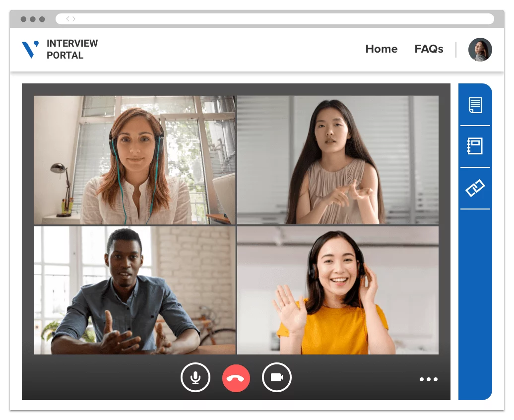 Avature Video Interview (Entretien vidéo d’Avature) est une solution autonome ou complémentaire facile à implémenter. Elle vous permet de proposer des entretiens vidéo en direct et en différé sur des portails entièrement aux couleurs de votre marque employeur, accessibles et adaptés aux appareils mobiles.