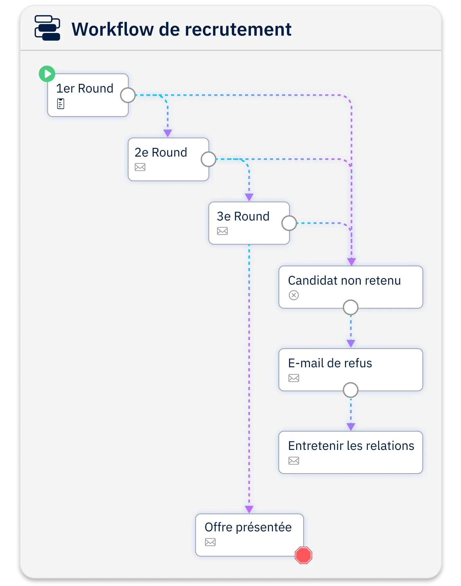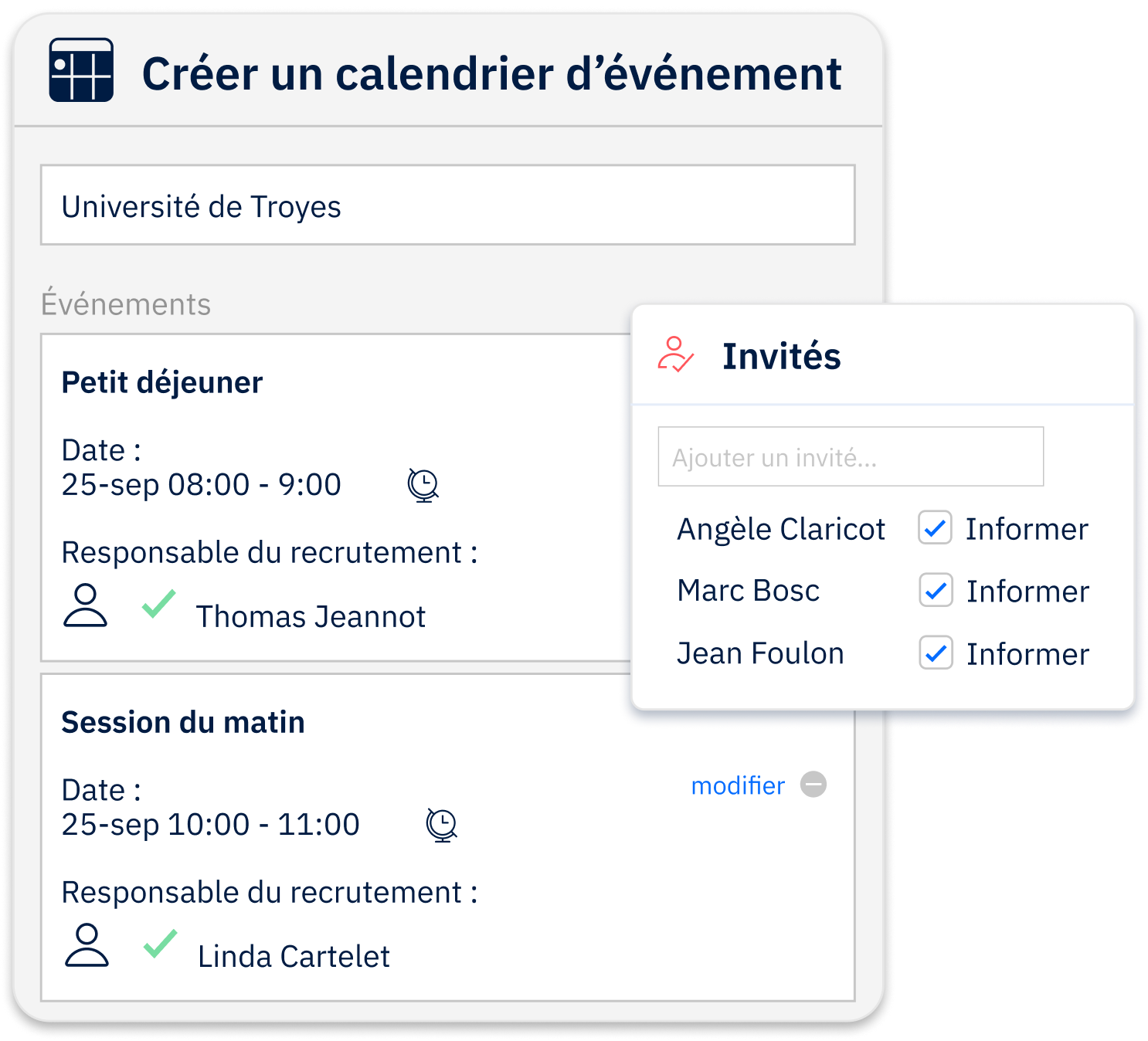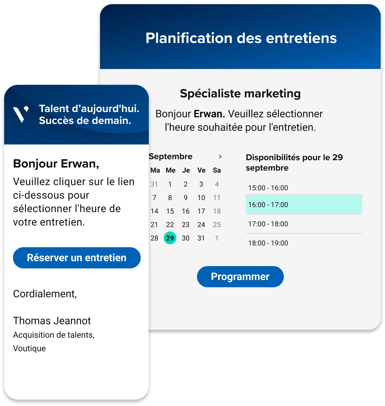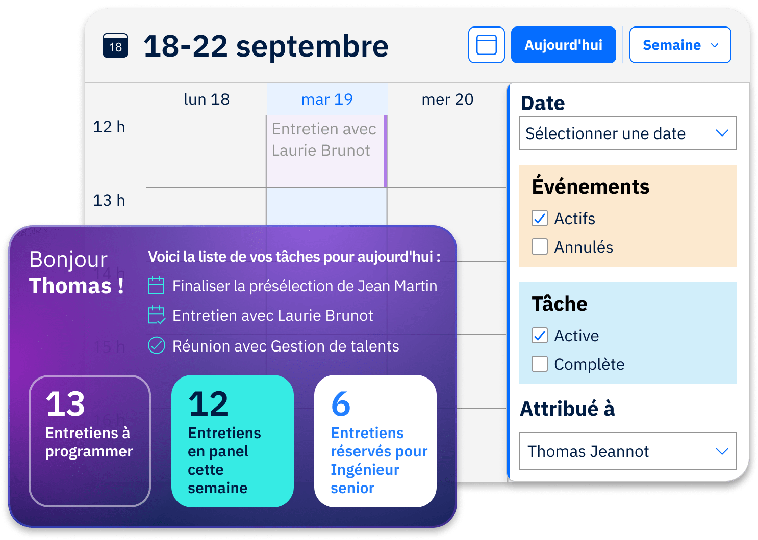Pour les organisations réalisant des milliers d’entretiens par an, notre planificateur permet de remettre de l’ordre dans un environnement chaotique et de réorienter les efforts des recruteurs vers des tâches à forte valeur ajoutée.